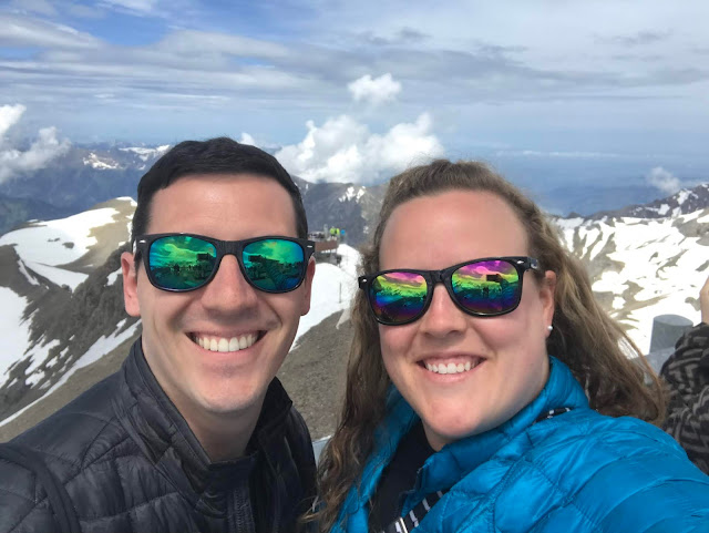 We got on one more cable car and finally got to Piz Gloria. That's the name of the revolving restaurant at the top. Once you get up there, everything is 007 related. The views were still incredible, and Tyler and I both agreed that this was better than the Jungfraujoch.